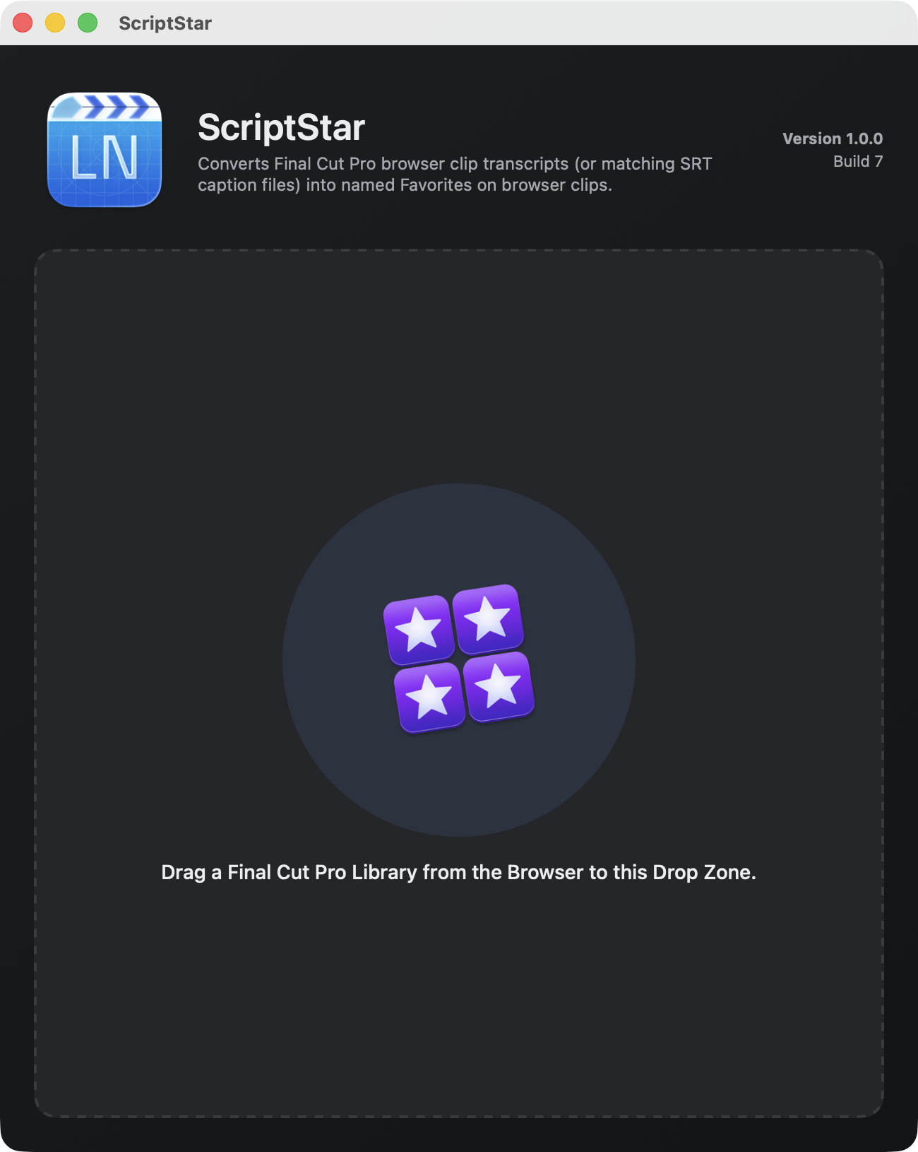 Once launched, simply drag your Final Cut Pro Library into the drop zone to get started.