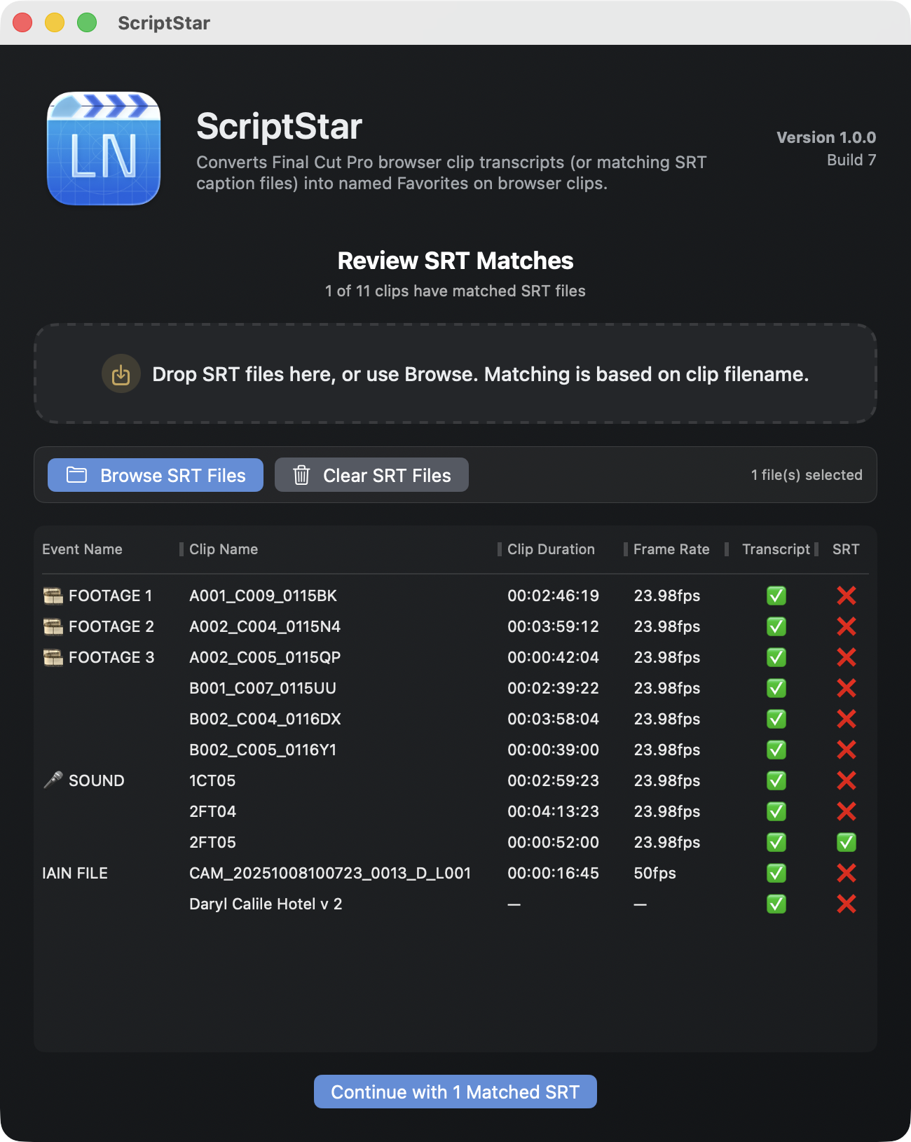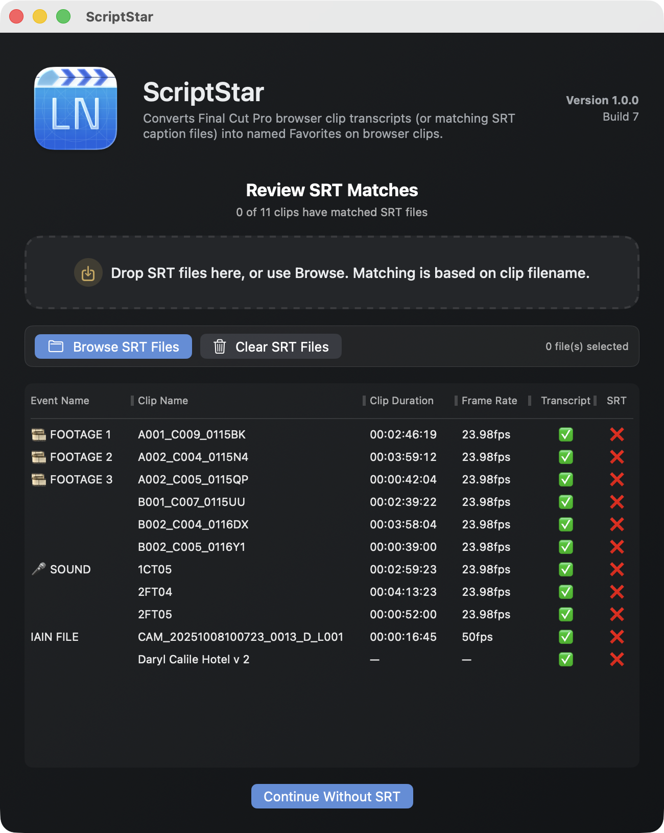 You can then import any SRTs to replace Final Cut Pro's built-in transcription: