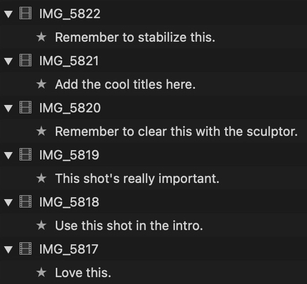 However, if you wish to continue to use traditional Favorites to organize B-roll clips, while using ScriptStar's transcript favorites and Favorites ⭐️ keywords to organize A-roll clips, that's easy. Simply move these two types of clips into separate events, and don't process the event containing the B-roll clips.
