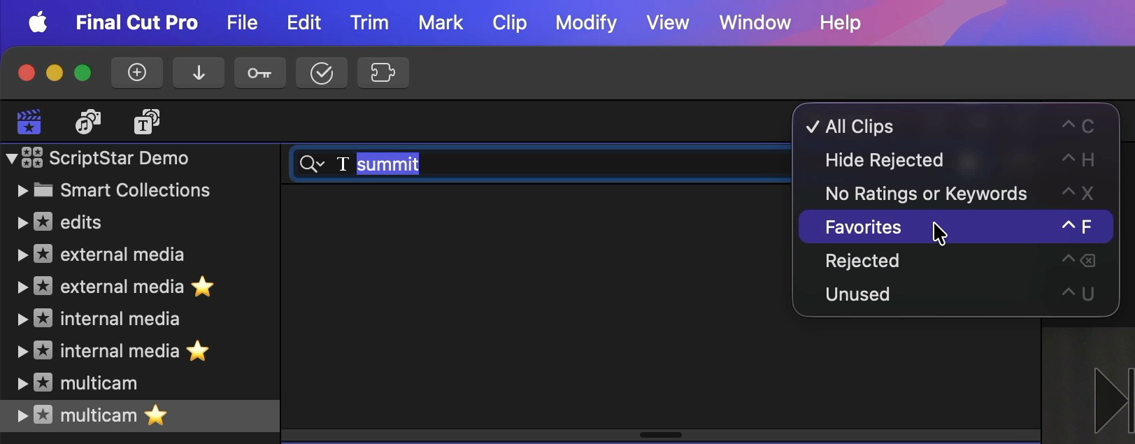 Lastly, if you had already applied Favorite ranges to clips or clip ranges before using ScriptStar, they will be converted into a new keyword called Favorites ⭐️. Each converted event will include this keyword collection, and you can apply this keyword the same way you would have applied favorites before.